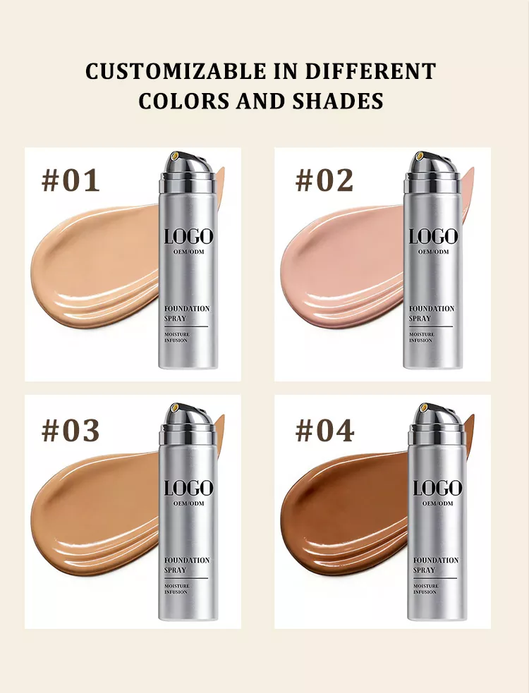हाम्रो विल्सन हाइड्रेटिङ सुथिङ ब्राइटनिङ फाउन्डेशन स्प्रेले फॉर्म्युलेसन डिजाइन, शेड म्याचिङ, प्याकेजिङ्ग ढाँचाहरू, र ब्रान्ड लेबलिङलगायत धेरै पक्षहरूमा अनुकूलन प्रदान गर्दछ। ग्राहकहरूले लक्षित बजार र उपभोक्ता आवश्यकताहरू अनुसार कभरेज स्तर, तेल नियन्त्रण प्रभावकारिता, मोइस्चराइजिंग सामग्री, र सूर्य सुरक्षा कारक जस्ता कार्यात्मक विशेषताहरू अनुरूप गर्न सक्छन्। साथै, विभिन्न छाला टोनहरू समायोजन गर्न ब्रान्ड सौन्दर्यशास्त्रसँग पङ्क्तिबद्ध शेडहरूको दायरा चयन गर्न सकिन्छ। प्याकेजिङको सन्दर्भमा, स्प्रे बोतलको क्षमता, सामग्री, नोजल प्रकार, र सौन्दर्य डिजाइन सबै अनुकूलन योग्य छन्, दुबै व्यावहारिकता र दृश्य अपील सुनिश्चित गर्दै। यसबाहेक, हाम्रो कारखानाले अनुकूलित लोगो, प्याकेजिङ प्रिन्टिङ, र निर्देशन पुस्तिका सामग्रीको साथ बेस्पोक ब्रान्डिङलाई समर्थन गर्दछ, व्यक्तिगत ब्रान्ड प्रवर्द्धन र विभेदित बजार स्थिति सक्षम पार्दै।